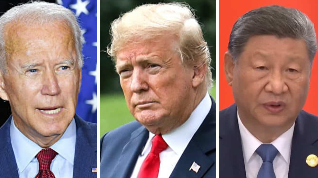 Từ trái sang: Ông Biden, ông Trump và ông Tập. (Ảnh ghép từ: Getty Image, Epoch Times và chụp màn hình CCTV)