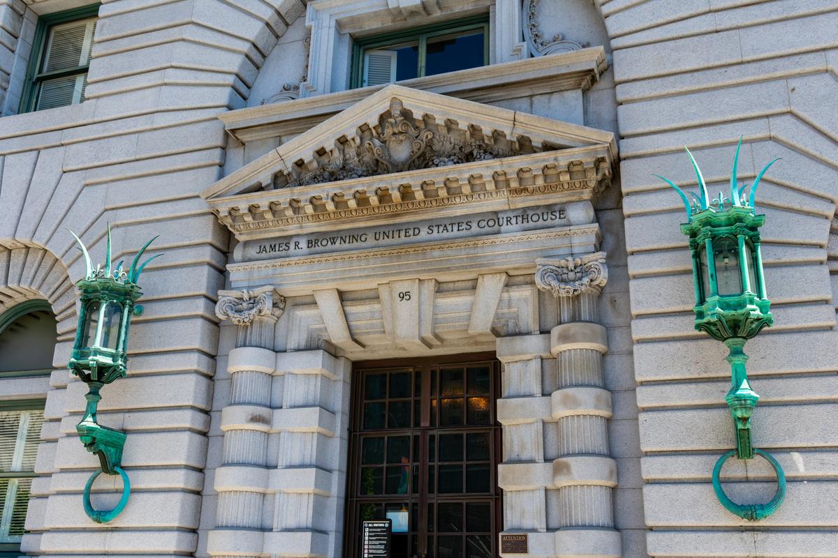 Lối vào tòa án của Tòa Phúc thẩm Hoa Kỳ Khu vực Thứ Chín, tọa lạc tại Tòa nhà Phúc thẩm Hoa Kỳ James R. Browning – San Francisco, California, Hoa Kỳ. (Ảnh: Michael Vi/shutterstock)