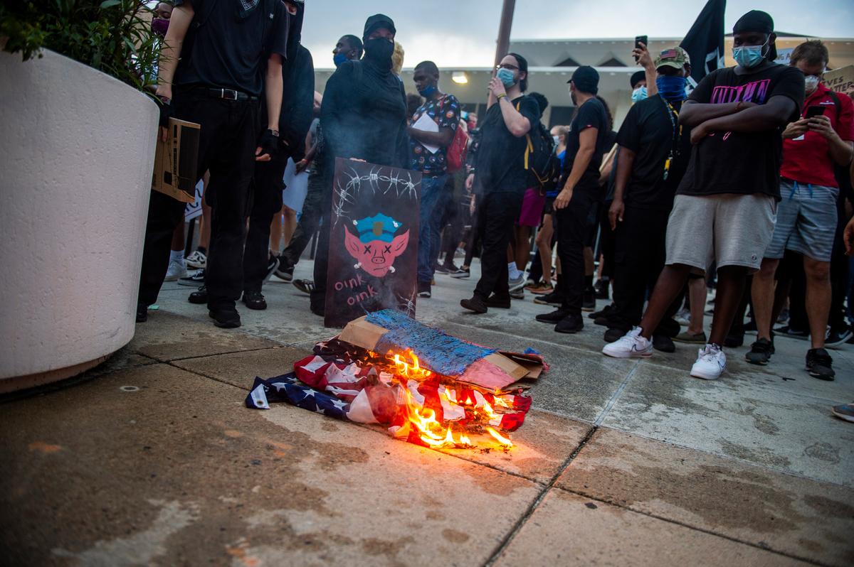 BLM tuần hành và biểu tình phản đối tại trung tâm thành phố Raleigh, Bắc Carolina, đốt cờ Mỹ. (Ảnh: Shutterstock)