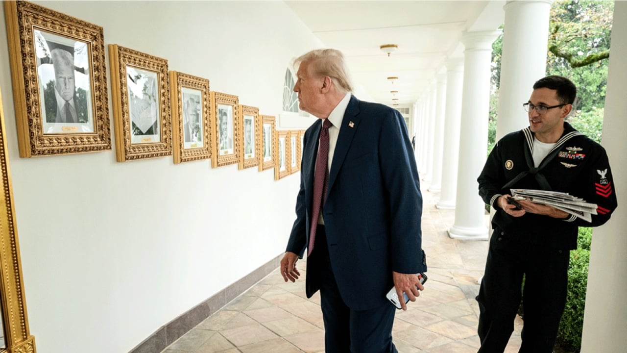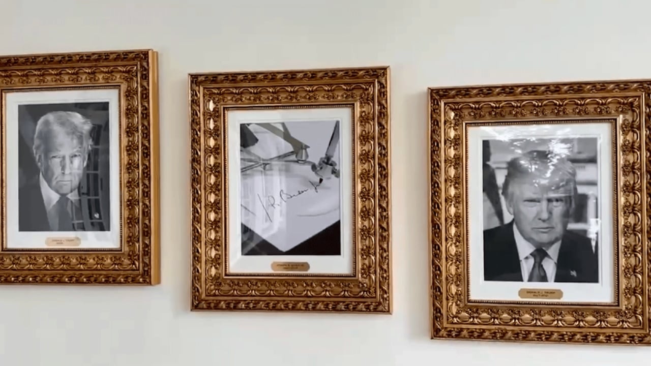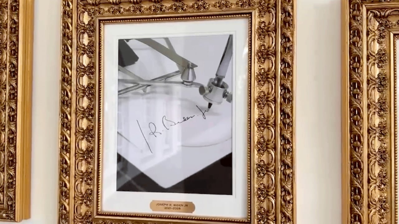 Hình ảnh một chiếc bút ký tự động, thay thế bức chân dung của cựu Tổng thống Joe Biden trong Nhà Trắng. (Ảnh: Nhà Trắng)