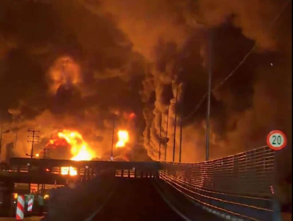 美以联军开始轰炸伊朗石油基础设施。视频显示,周六深夜以色列袭击后,德黑兰北部郊区的沙赫兰油库发生大规模火灾。以色列军方坚持说打击的是与伊朗武装部队有关联的燃料储存设施及相关场所。 https://t.co/iUNgAMqXKq pic.twitter.com/jvAaIK0pBX