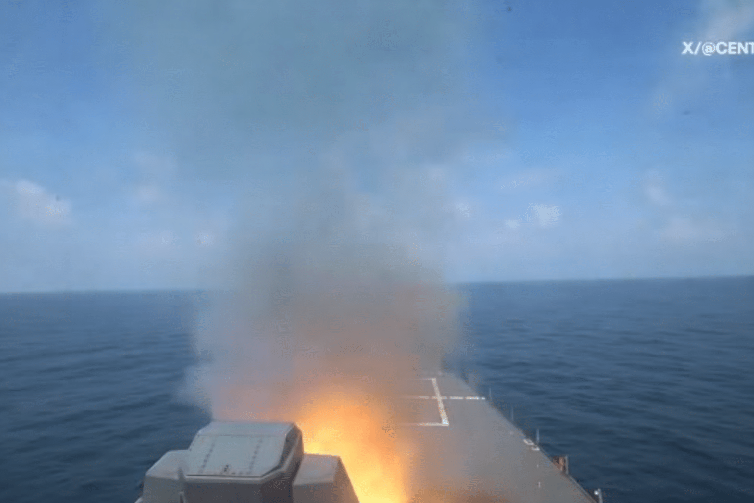 Hải quân Mỹ tấn công các tàu chiến Iran. (Ảnh chụp màn hình X)