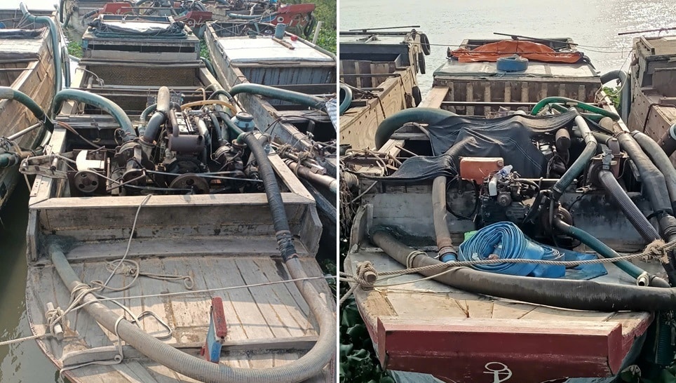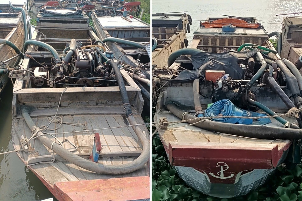 6 ghe có thiết bị bơm hút cát bị phát hiện tại khu vực Vàm Cổ Lịch (tỉnh Đồng Tháp) từ tháng 2 tới nay, hiện chưa xác định được chủ sở hữu.