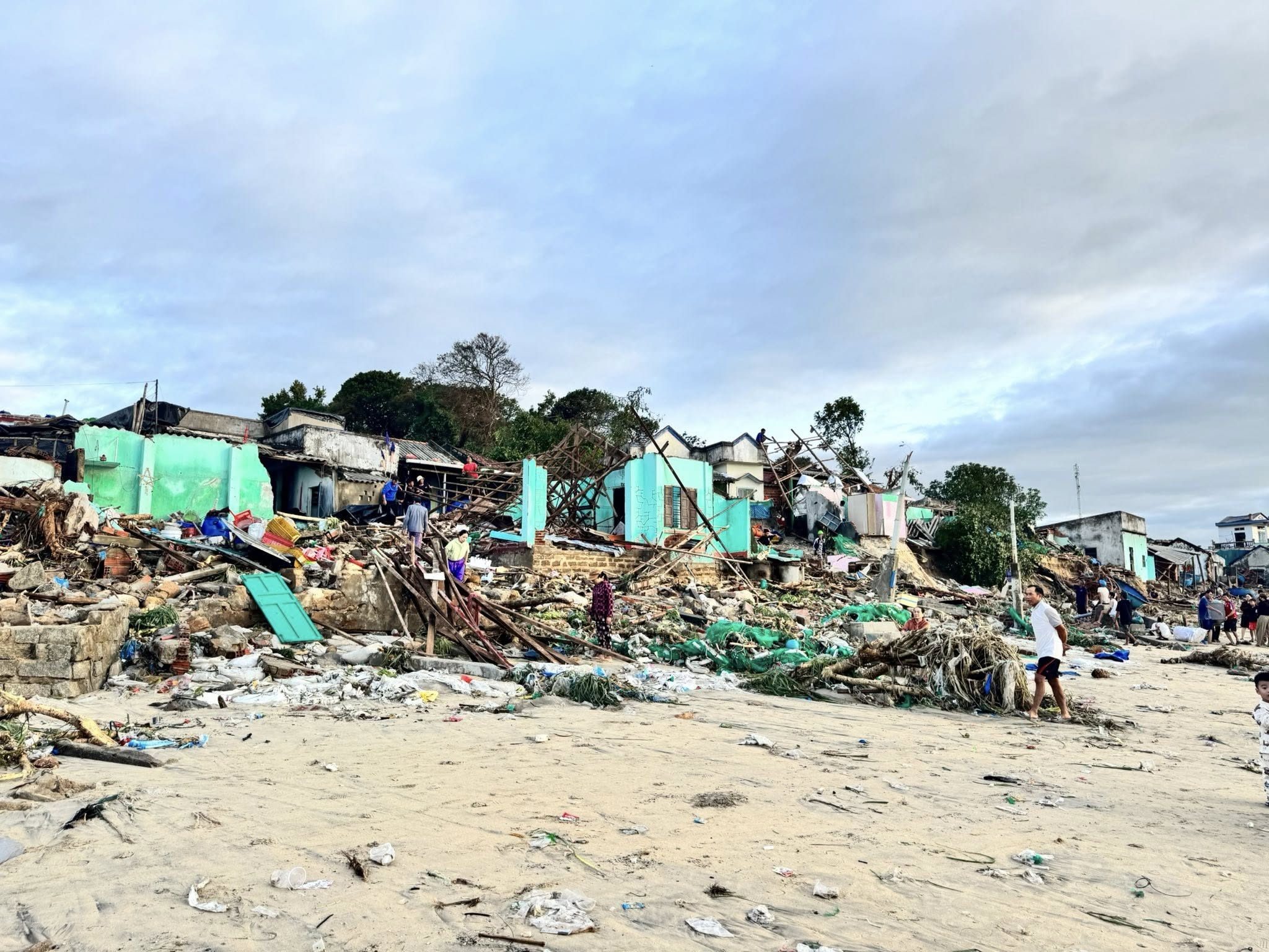 Cảnh tượng tan hoang sau bão số 13 tại làng chài ở Phù Mỹ Đông, tỉnh Gia Lai. (Ảnh: Nell Nguyễn/Facebook)