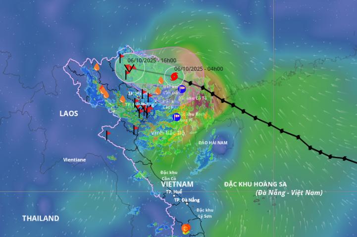 Tại TP. Hà Nội, từ trưa đến đêm 6/10, mưa lớn có thể xảy ra với lượng mưa phổ biến 50-100 mm, cục bộ có nơi trên 150 mm.