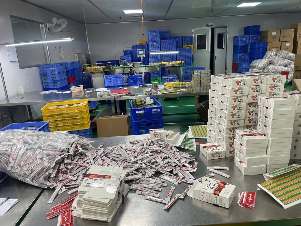 Công an thu giữ hàng nghìn sản phẩm thực phẩm chức năng giả, kém chất lượng đang trong quá trình sản xuất và đóng gói để đưa đi tiêu thụ.
