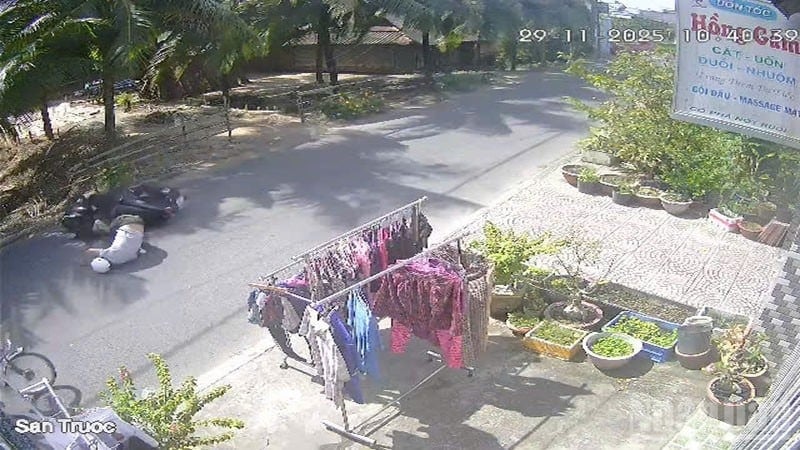 Camera an ninh của nhà dân hai bên đường ghi lại hình ảnh một người đàn ông điều khiển xe máy trên đường Lộ Ngang thì bất ngờ vướng phải sợi dây cáp thòng thấp xuống mặt đường. Cả người và xe ngã xuống rồi trượt dài trên đường.