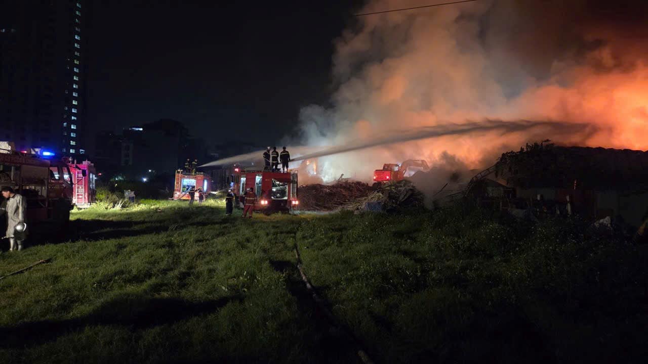 Lửa cháy lớn nhất tại khu vực xưởng sản xuất đồ gỗ, nhựa mica. Nguyên liệu dễ cháy, gió lớn khiến lửa lan nhanh. (Ảnh: Công an thành phố Hà Nội/Facebook)