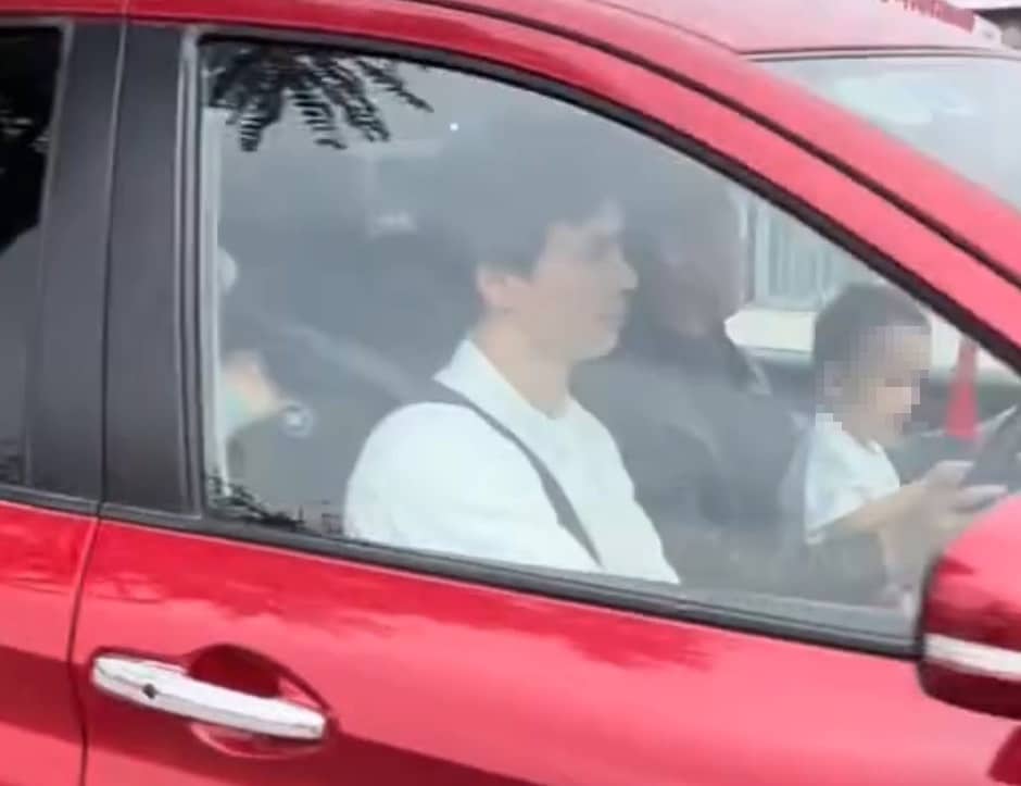 Theo video do người dân ghi lại, đăng trên mạng xã hội, trên xe ô tô con BKS 89A-504.xx đang di chuyển trên đường Vũ Đức Thận, nam tài xế để một bé trai ngồi phía trước, ngay sau vô lăng.
