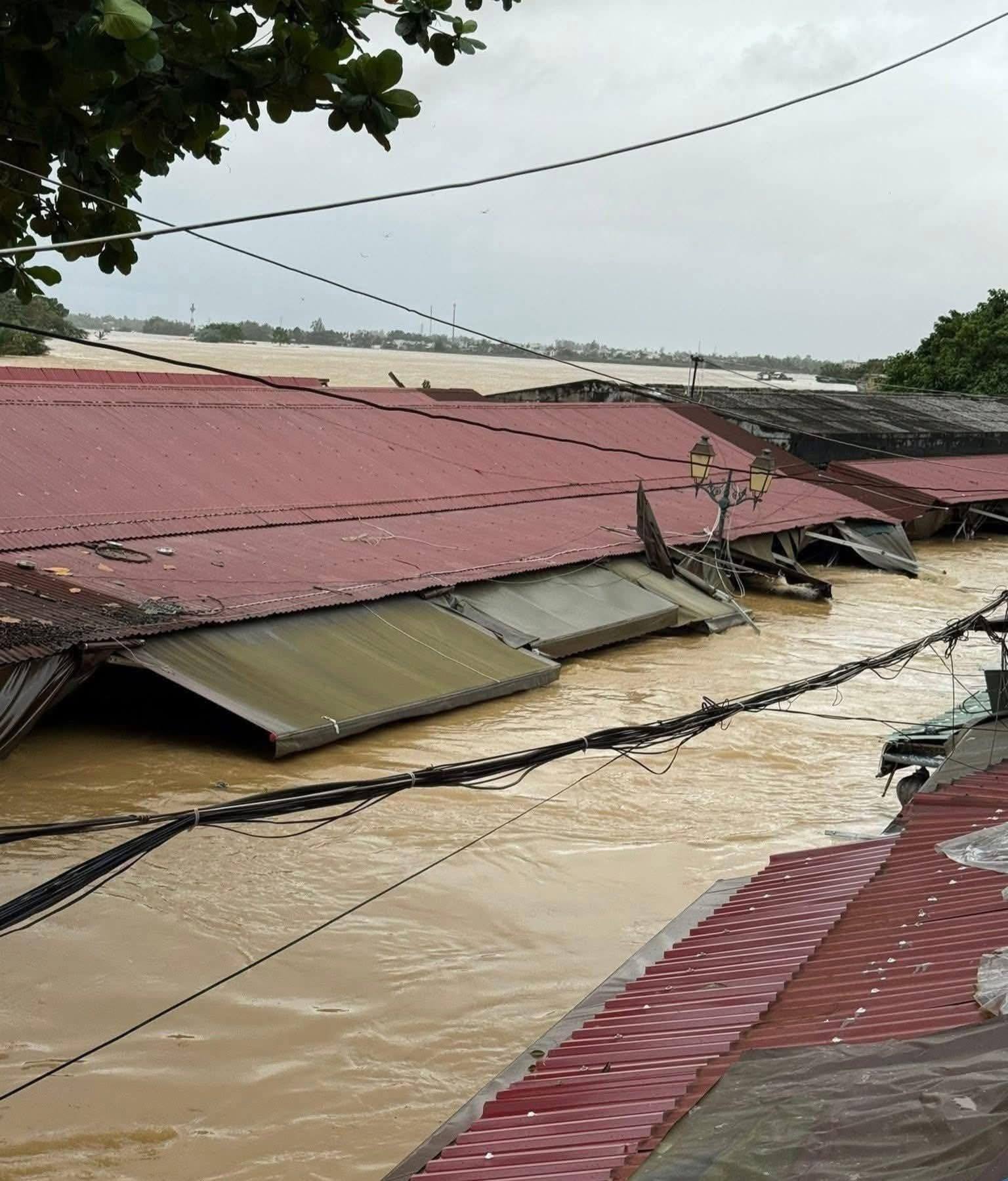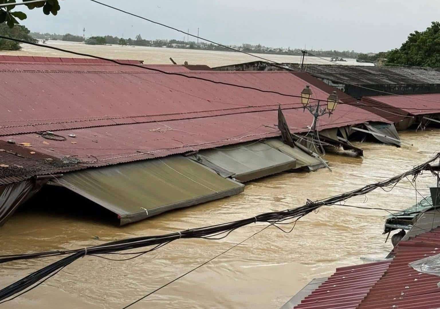Chợ Hội An ngập đến mái hiên trong đợt mưa cuối tháng 10/2025. (Ảnh: dẫn qua Thời tiết Đà Nẵng/Facebook)