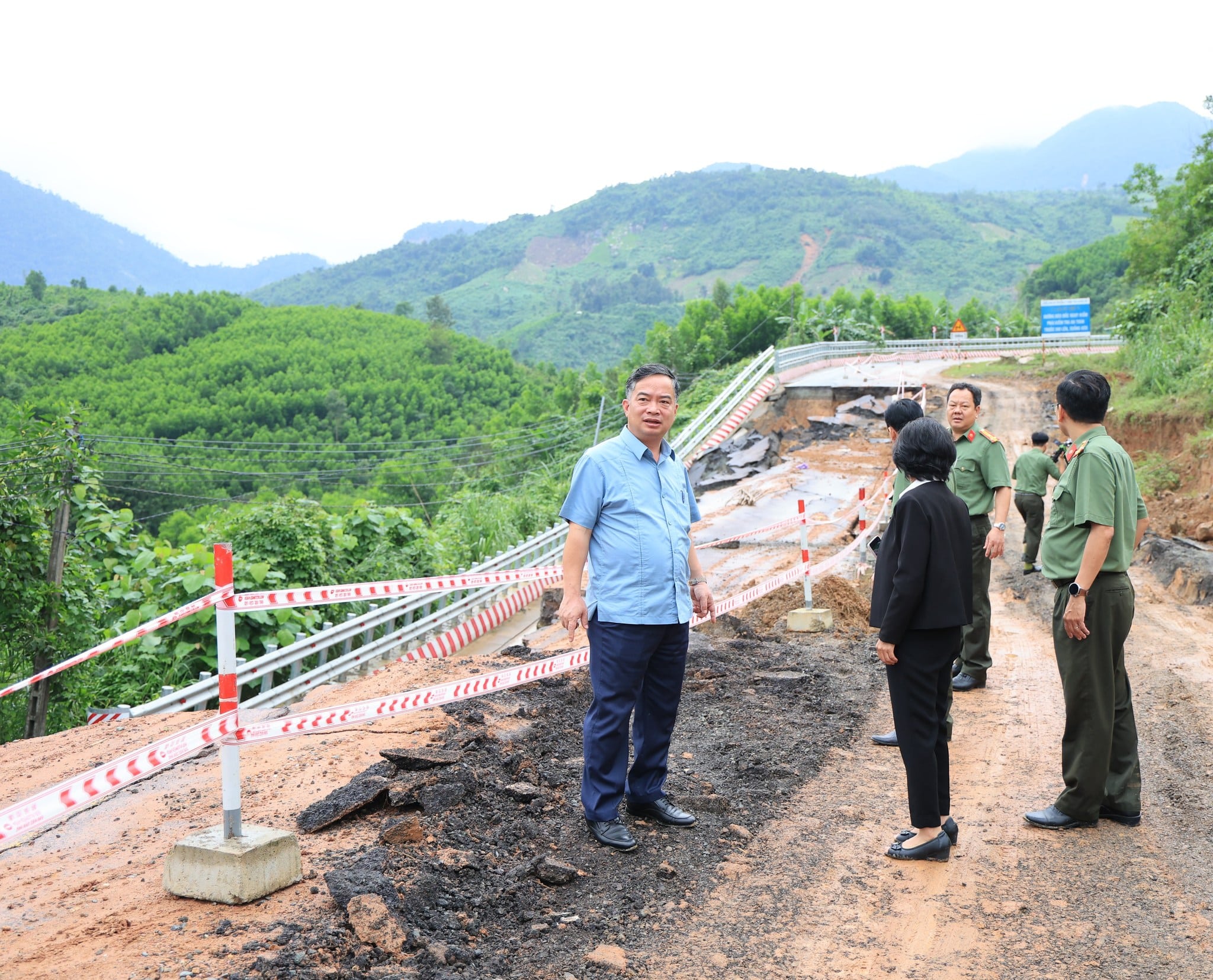 Còn 3 vị trí sạt taluy âm gây đứt, sụp mặt đường, đơn vị bảo trì thông tuyến 1/2 mặt đường, phần còn lại cùng địa phương rào chắn, chốt chặn không cho xe qua lại.