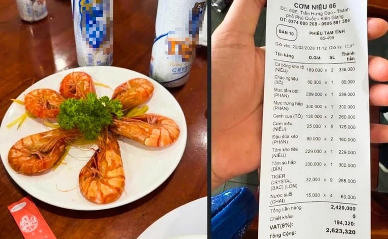 Ngày 24/2, bà Nguyễn Thị Kim Loan, Phó chủ tịch UBND đặc khu Phú Quốc, cho biết sau phản ánh về dĩa tôm sú hấp 6 con giá 300.000 đồng tại quán Cơm Niêu 66, UBND đặc khu đã yêu cầu các đơn vị liên quan kiểm tra để xử lý nếu phát hiện vi phạm, nhằm tránh ảnh hưởng tiêu cực đến du khách.