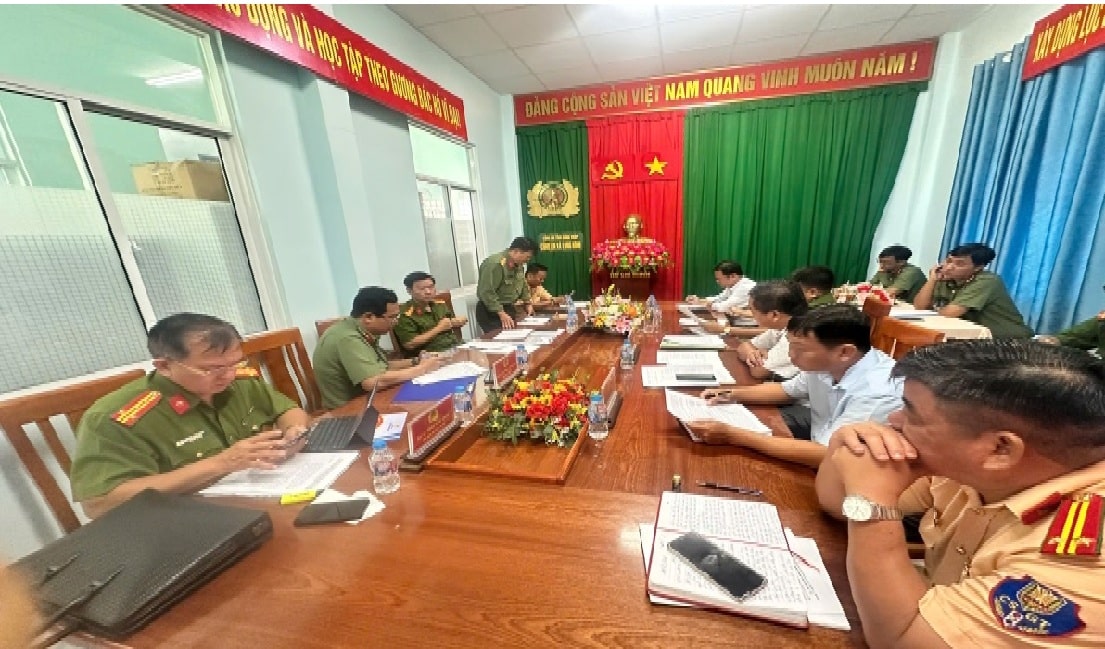 Công an tỉnh Đồng Tháp trong cuộc họp xử lý tình trạng khai thác đất mặt ruộng trái phép, ngày 10/4. (Ảnh: dongthap.gov.vn)