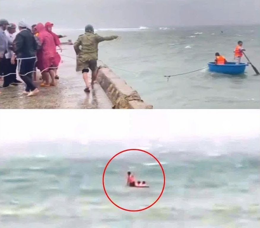 Do sóng và gió lớn, chiếc thuyền thúng chở 3 người bị cuốn trôi ra xa, không thể quay vào bờ. Một chiếc thuyền ra ứng cứu nhưng bất thành, phải quay vào bờ (chiếc thuyền sau đó không thể trở lại vũng neo đậu An Hải tránh trú, bị bão đánh vỡ vụn ở cảng Bến Đình).