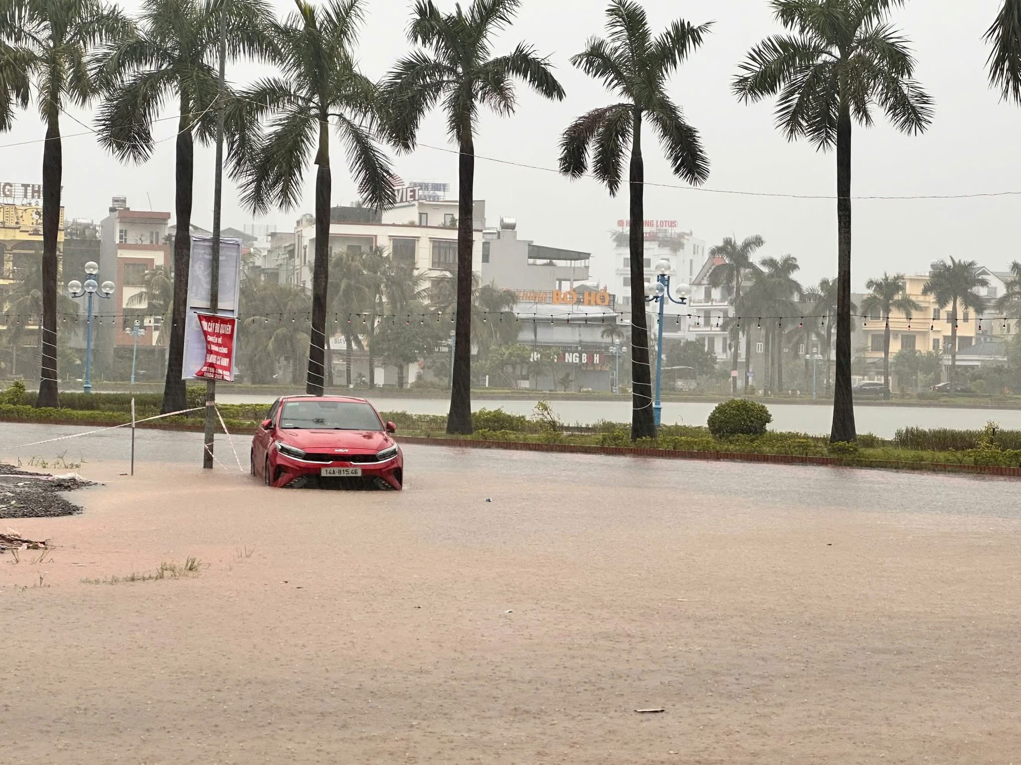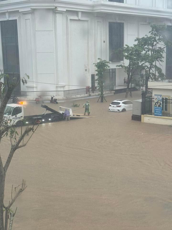 Các trận mưa lớn, dồn dập đổ xuống từ sáng sớm tới chiều 14/10 chưa dứt khiến nhiều tuyến phố, khu đô thị ở TP. Hạ Long (cũ) (tỉnh Quảng Ninh) ngập trên diện rộng. Có nơi chủ xe ô tô phải gọi xe cứu hộ.
