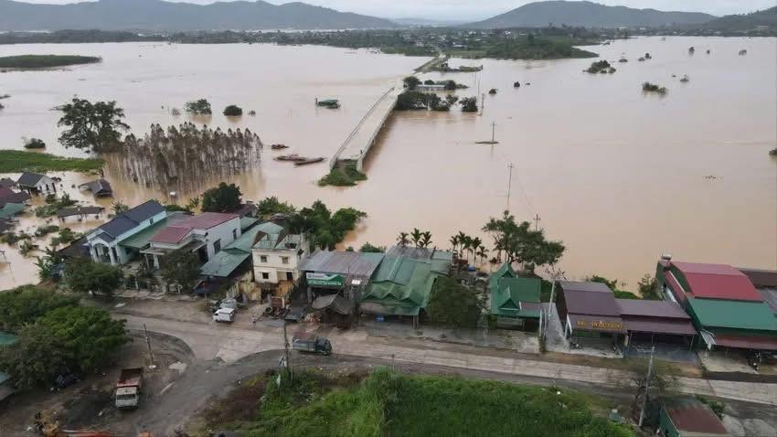 Mưa lớn kéo dài từ đêm 18/11 khiến nhiều khu vực phía Đông tỉnh Đắk Lắk ngập sâu 4-5 m. Hàng trăm ngôi nhà chìm trong nước, người dân phải chạy lũ trong đêm.