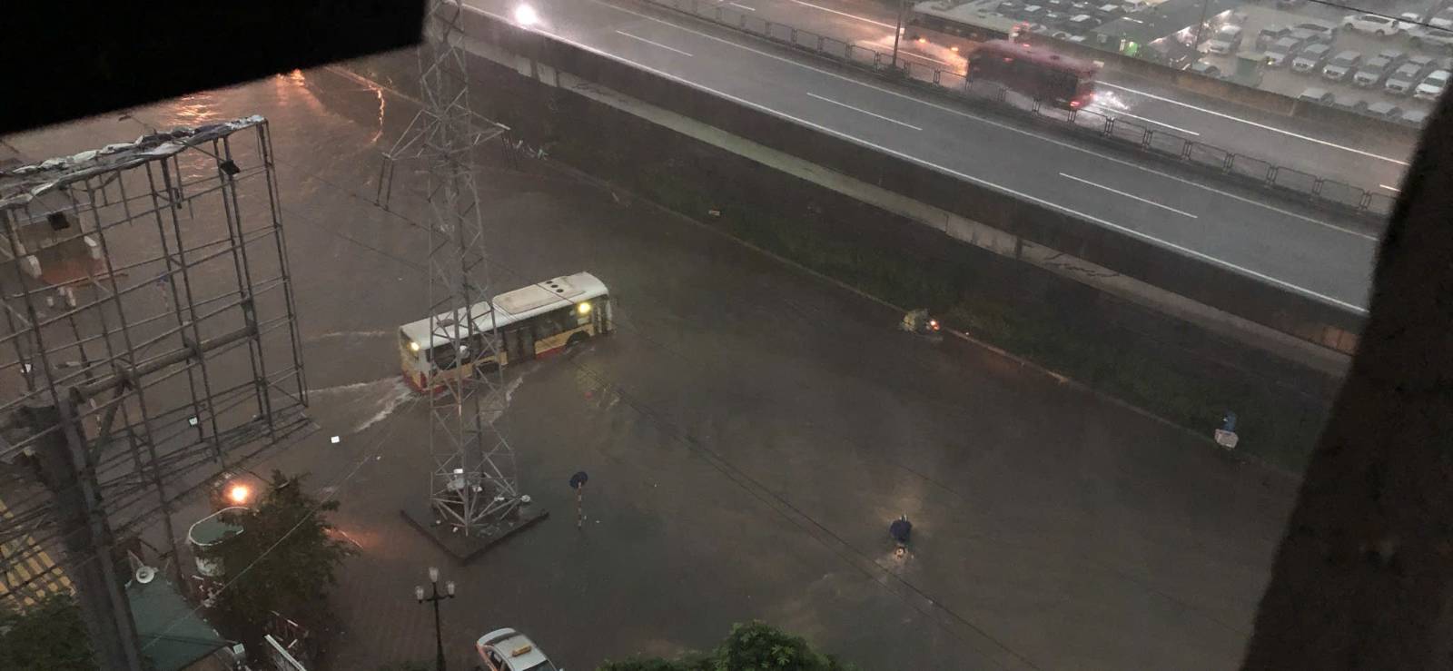 Sấm chớp mưa ngập trước tòa nhà FLC (đường Phạm Hùng, Nam Từ Liêm). (Video: Người dân cung cấp/Facebook)