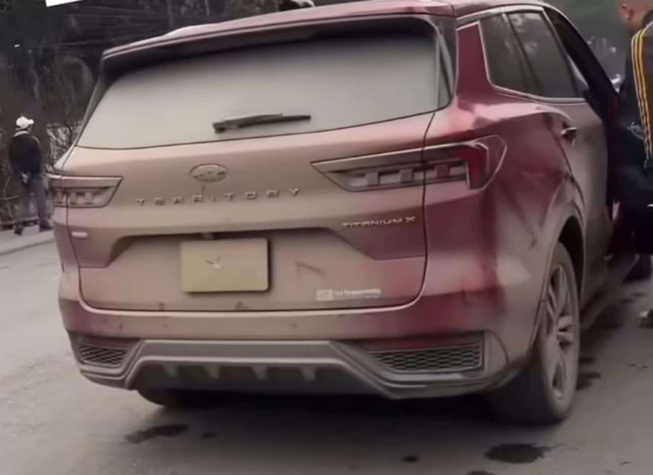 Hình ảnh ô tô do anh H. điều khiển có biển kiểm soát phía sau bị bùn đất che lấp. (Ảnh cắt từ clip/Facebook)