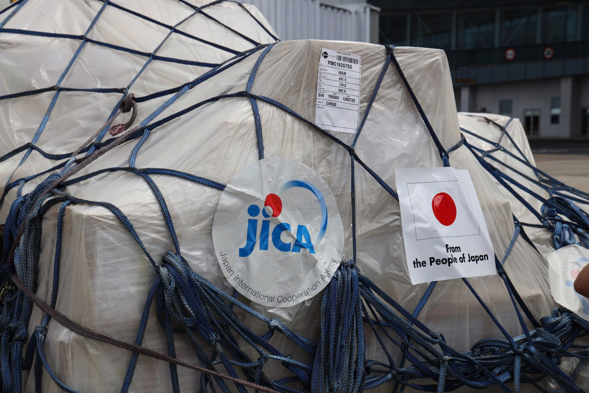 Đợt hàng cứu trợ quốc tế đầu tiên cho đợt thiên tai “bão chồng bão, lũ chồng lũ” tại Việt Nam đến từ người dân Nhật Bản, do JICA đại diện trao tặng đã đến Việt Nam. Dự kiến các thiết bị lọc nước, chăn… sẽ được chuyển tới Bắc Ninh trong ngày 14/10.