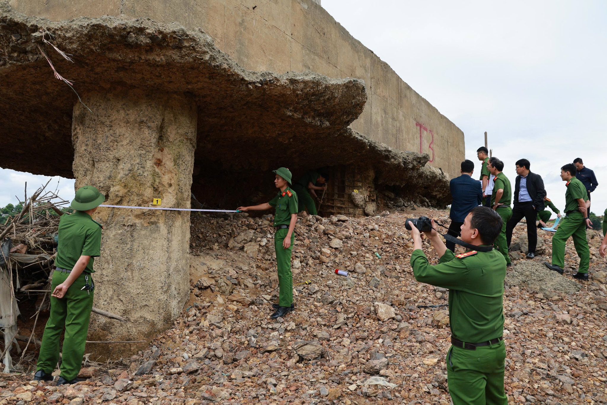 Mố cầu Sông Lô trơ lõi sắt hoen rỉ, tháng 11/2025. (Ảnh: Công an tỉnh Phú Thọ/Facebook)