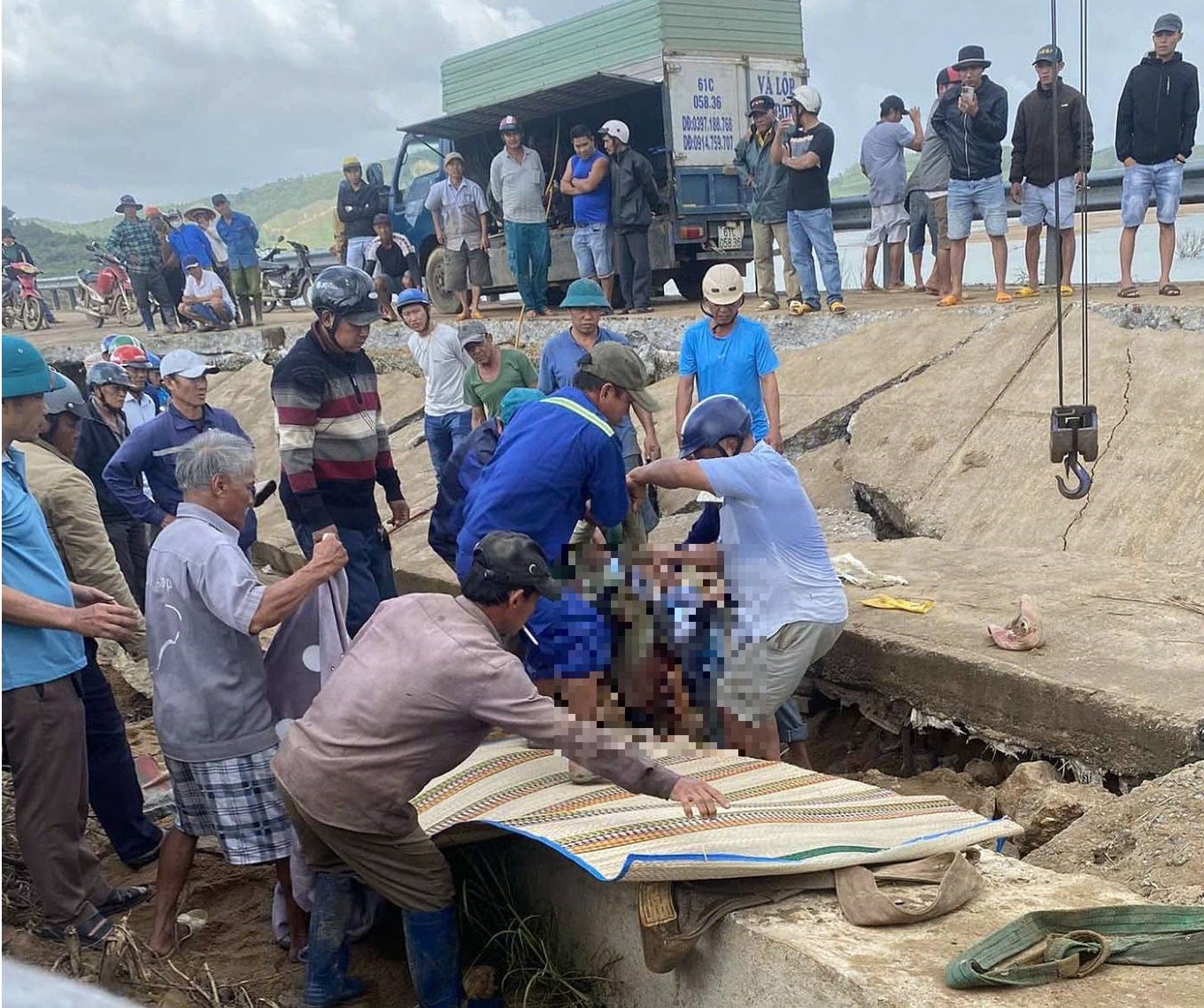 Bốn người đi trồng cây keo con vào trú mưa dưới bờ kè sông Ba thuộc tỉnh Phú Yên cũ, nay là tỉnh Đắk Lắk. Bờ kè bê tông sập đổ, đè chết cả 4 người.