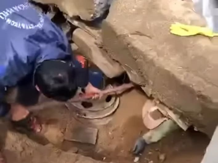 Tại hiện trường, người dân địa phương, công an và lực lượng cứu hộ cứu nạn cố gắng dùng kích cách nâng các tấm bê tông để đưa các nạn nhân ra ngoài.