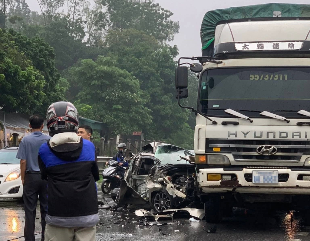 Tại hiện trường, 3 xe ô tô đều hư hỏng, trong đó xe ô tô con bị vò nát, biến dạng hoàn toàn. Tài xế xe ô tô con – anh Nguyễn Quý D. may mắn thoát chết, tự chui ra ngoài qua cửa kính ghế phụ.