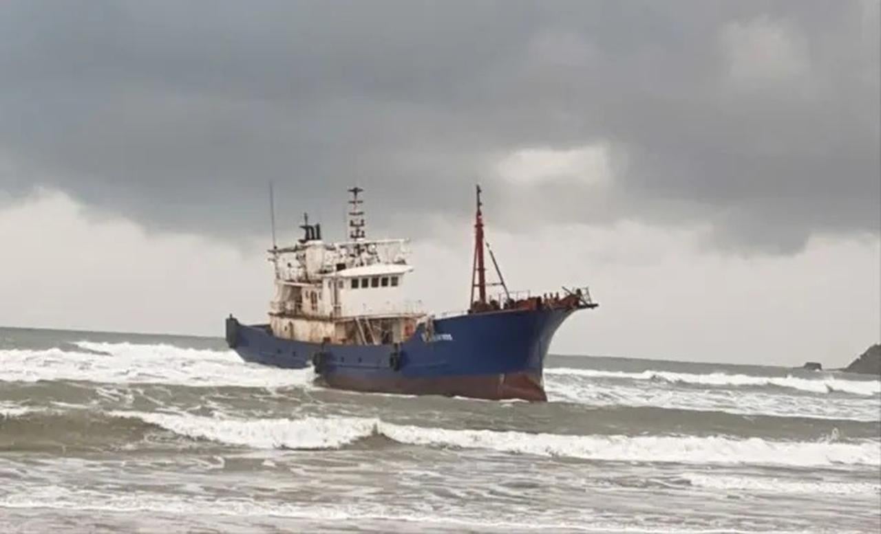 Sau đó, trực thăng cứu hộ của Trung Quốc đã ứng cứu 3 thuyền viên, con tàu bị thả trôi trên biển và trôi dạt, mắc cạn ở vùng biển Dung Quất.