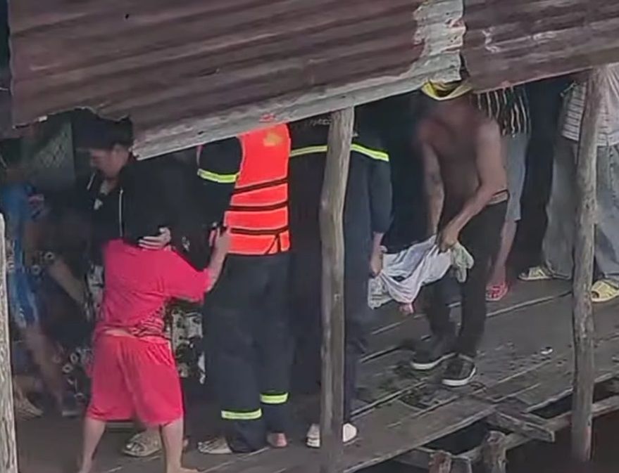 Người mẹ ngất xỉu khi chiếc ghe chở thi thể con tiến vào. Anh lớn khóc xé khi mẹ ngất, thi thể em được đưa vào.