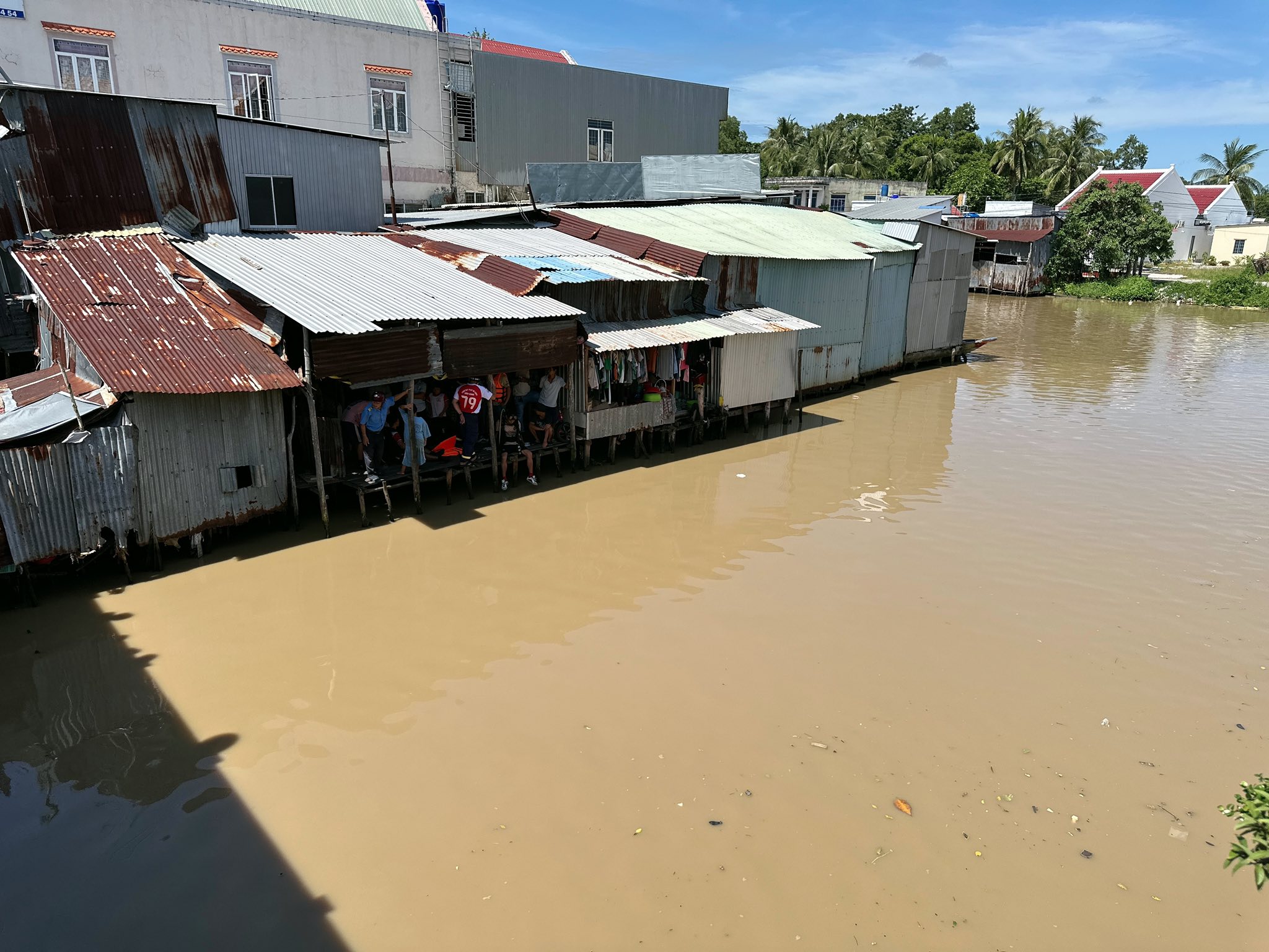 Trong căn nhà sàn gỗ cất ven kênh Xẻo Rô (tỉnh An Giang), cháu bé 4 tháng tuổi mất tích, nghi ngờ bị lọt kẽ sàn rơi xuống kênh.