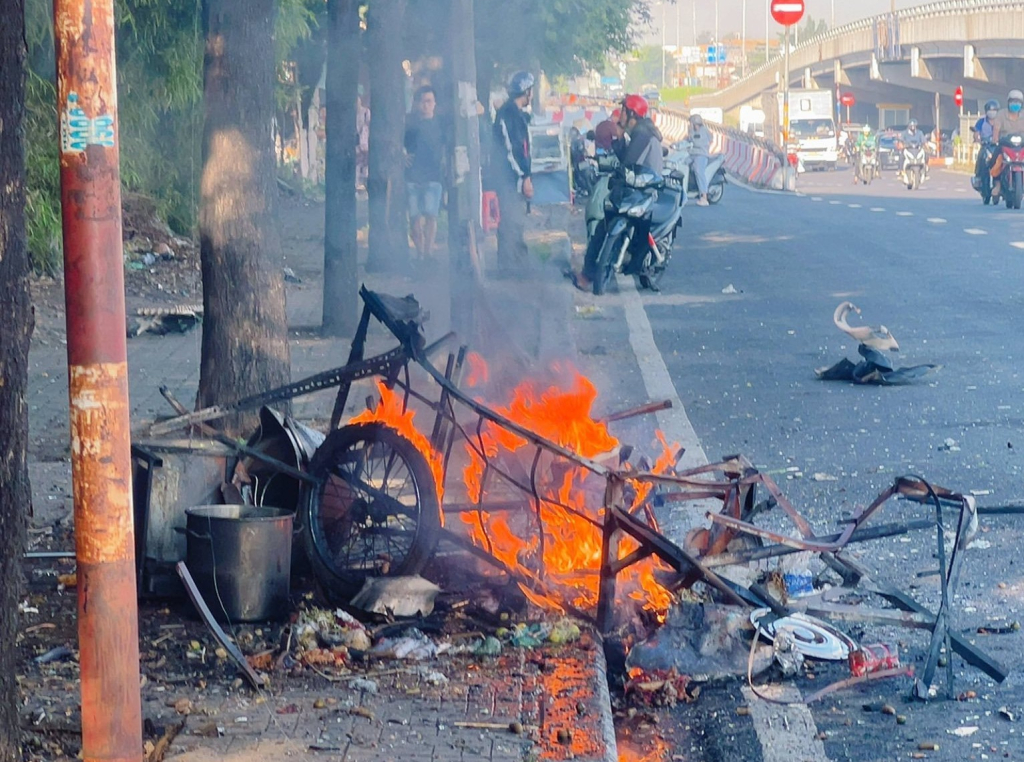 Một vụ nổ vừa xảy ra tại khu vực cầu vượt Linh Xuân (TP.HCM), khiến một xe bán đồ ăn vỉa hè cháy rụi.