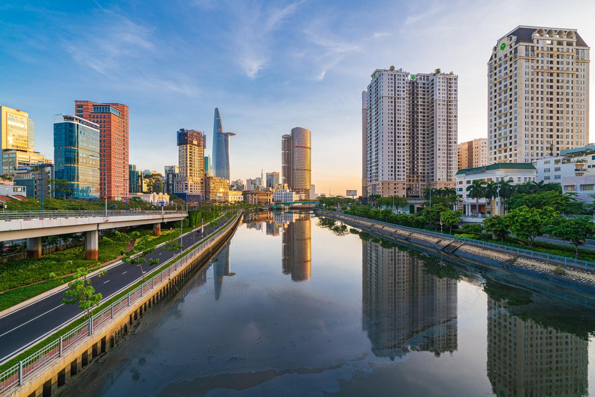 Buổi sáng tuyệt đẹp tại cầu Calmette, quận 1, TP.HCM nhìn ra tòa nhà Bitexco và tòa nhà IFC One. (Ảnh: Scout901/shutterstock)