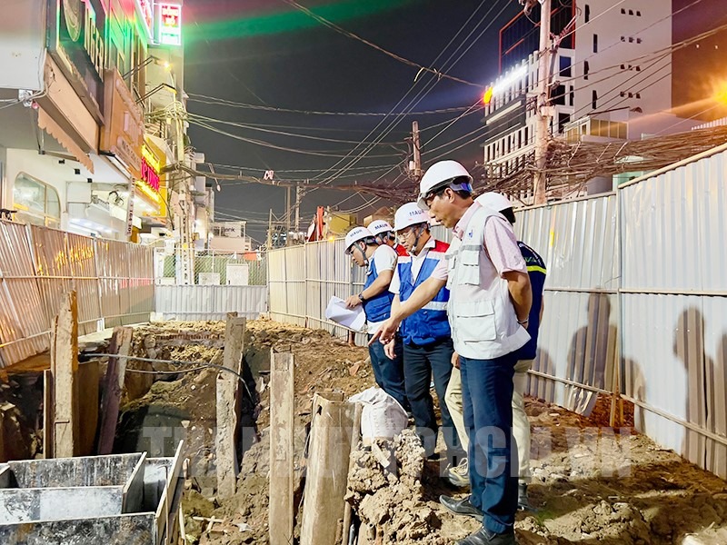 Lãnh đạo Ban Quản lý Đường sắt đô thị kiểm tra di dời hạ tầng kỹ thuật Tuyến metro số 2. (Ảnh: thanhuytphcm.vn)