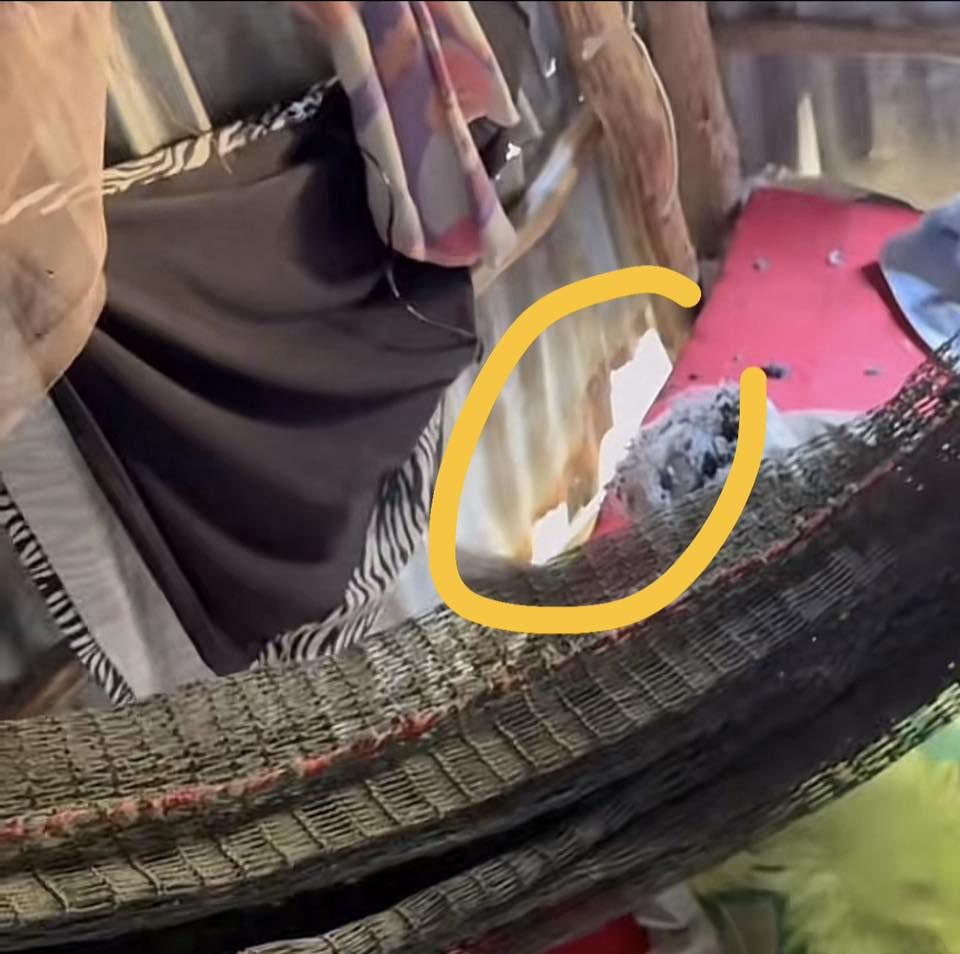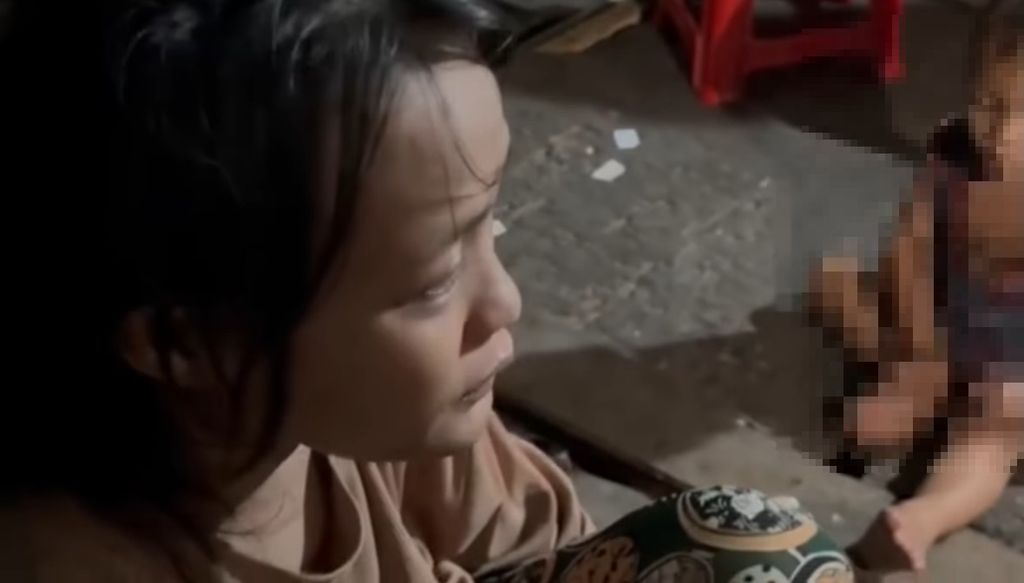 Vợ chồng chị Kiều có 5 người con. Người chồng làm thuê trên biển, khoảng 3 đến 6 tháng về một lần. Hàng ngày, chị đi bán vé số, chăm con nhỏ. Căn chòi tạm cất dưới gầm cầu là từ nhà nội, dột khi mưa gió.