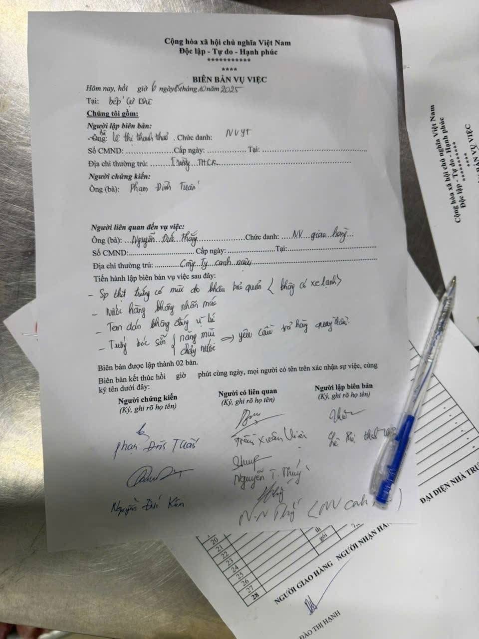 Sau khi lập biên bản vụ việc, thịt lợn tiếp tục được sử dụng để nấu ăn, trứng cút được thay thế bằng trứng gà.