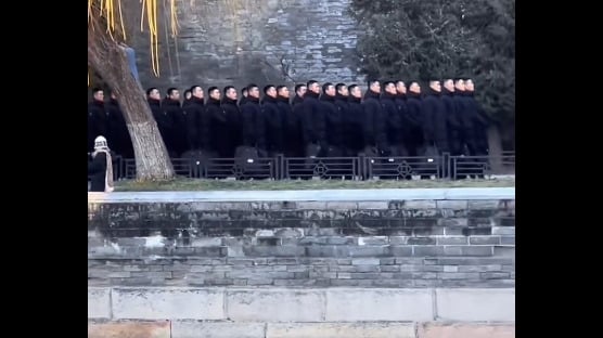 Theo một đoạn video lan truyền gần đây, khu vực xung quanh Trung Nam Hải được canh phòng cực kỳ nghiêm ngặt. Một lượng lớn “người mặc đồ đen” được xếp hàng ngay ngắn và diễu hành ngang qua những bức tường đỏ, tạo ra một bầu không khí căng thẳng, kỳ lạ và rùng rợn. Một số cư dân mạng thốt lên: