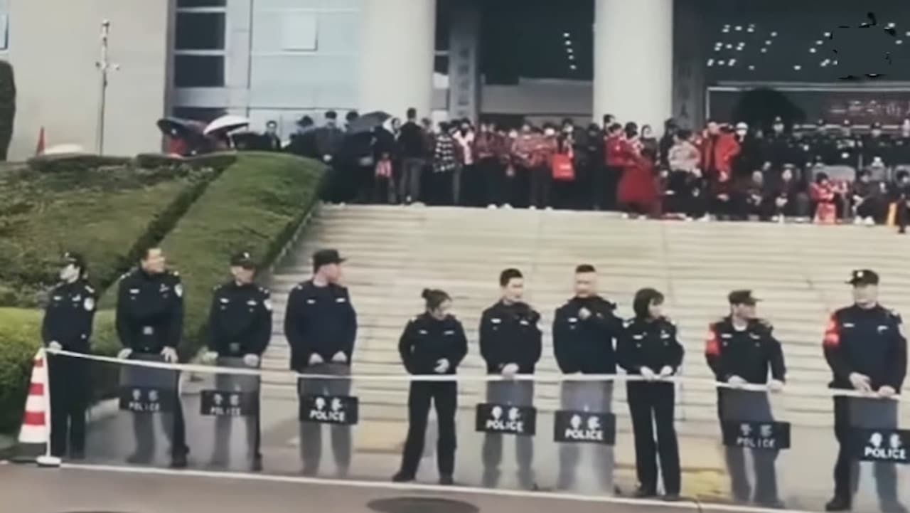 Ngày 2/3, Công ty Hoàng Kim Mã Đầu ở tỉnh Phúc Kiến tuyên bố phá sản, dẫn đến cuộc biểu tình của hàng nghìn người dân bao vây trụ sở chính quyền thành phố. (Nguồn ảnh: Ảnh chụp màn hình video)