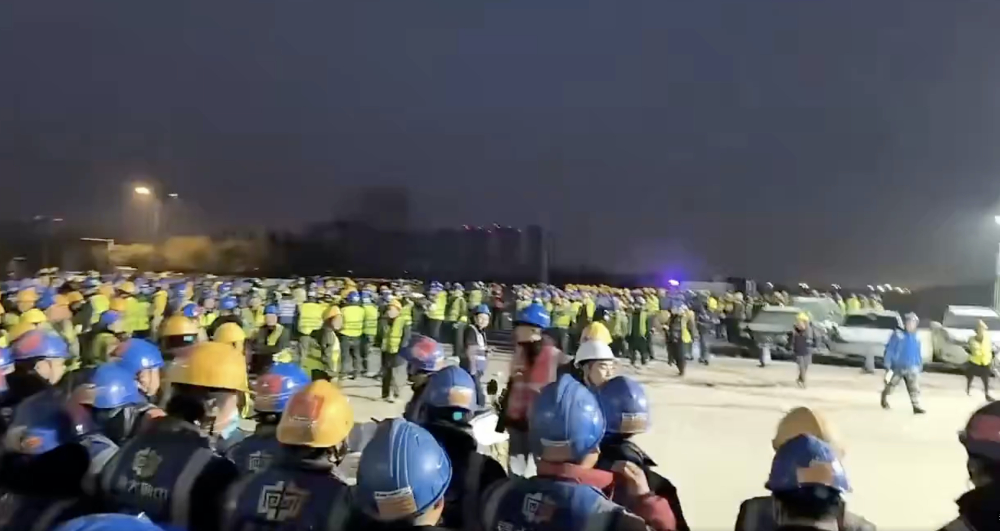 Đầu tháng 2 năm 2026, một cuộc biểu tình quy mô lớn của công nhân đòi tiền lương chưa được trả đã diễn ra xung quanh công trường xây dựng Ga tàu hỏa Đông Thượng Hải. Nhiều công nhân đã tập trung tại quảng trường xung quanh dự án hoặc gần công trường xây dựng, yêu cầu được thanh toán số tiền lương còn nợ. (Ảnh chụp màn hình từ video)