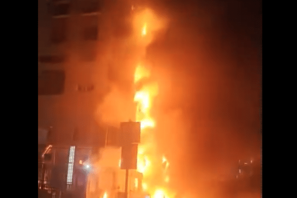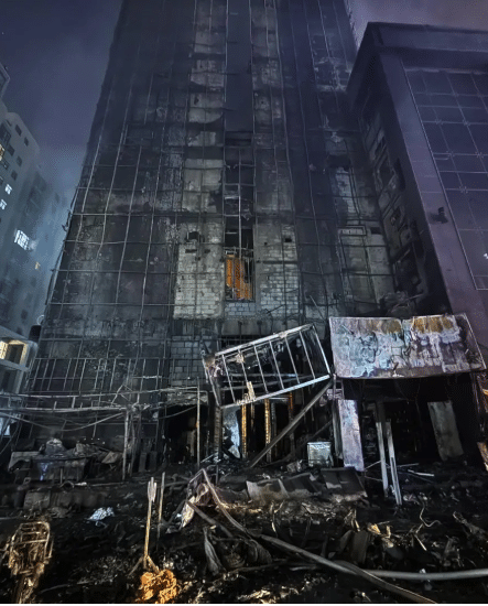 Theo các video lan truyền trên mạng, ngọn lửa bùng phát dữ dội và lan rất nhanh theo mặt ngoài tòa nhà, thiêu rụi toàn bộ mặt tiền. Khói đen dày đặc, lửa bốc cao, nhiều mảnh vỡ cháy rơi từ trên cao xuống, kèm theo tiếng la hét và khóc lóc, tạo nên khung cảnh hỗn loạn và nguy hiểm.
