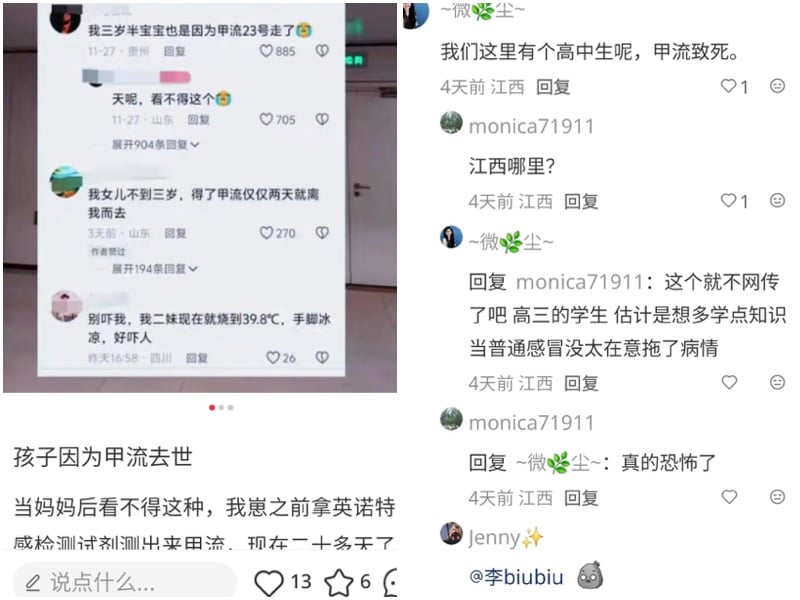 Cuối tháng trước, một phụ huynh ở Quý Châu trong nhóm thảo luận về các ca tử vong do cúm A chia sẻ: “Bé nhà mình ba tuổi rưỡi cũng mất ngày 23 vì cúm A.”