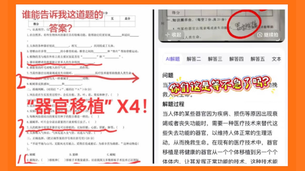 Một số câu hỏi liên quan đến ghép tạng đã xuất hiện trong đề thi khoa học lớp 3 ở Trung Quốc. (Ảnh: Mạng xã hội)