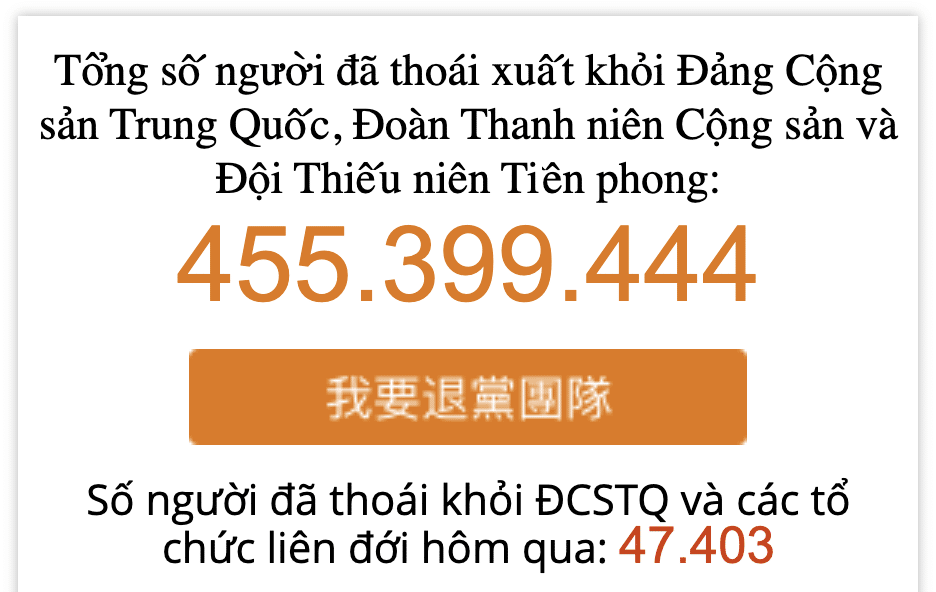 Nay tôi tuyên bố nghiêm chỉnh thoái khỏi Hồng Vệ Binh và tất cả tổ chức tà ác của ĐCSTQ.”