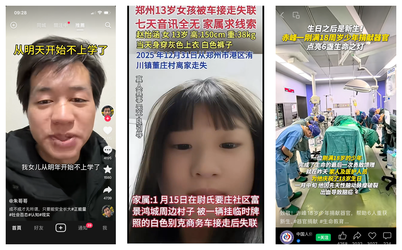 Trước sự lan truyền trên mạng về việc "tiến hành lấy nội tạng trẻ em để cấy ghép bất hợp pháp", gần đây nhiều video liên quan đến việc hiến tạng của trẻ vị thành niên đã được chia sẻ rộng rãi trên các nền tảng xã hội. (Ảnh chụp màn hình)