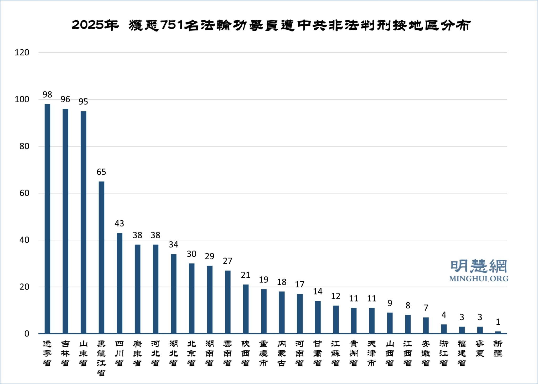 Theo trang Minghui.org, tính đến năm 2025, trang web đã nhận được thông tin 751 học viên Pháp Luân Công bị các tòa án của Đảng Cộng sản Trung Quốc (ĐCSTQ) kết án một cách phi pháp, trong đó có 514 người bị kết án phi pháp vào năm 2025 và 237 người bị kết án trong các năm trước đó.