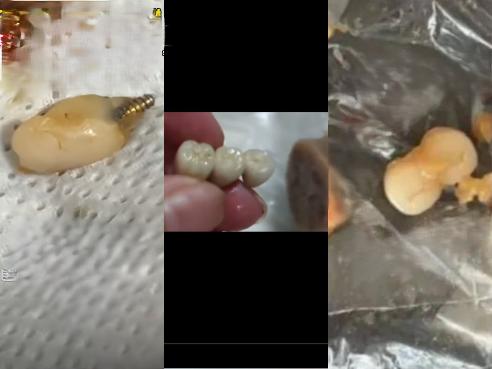 “Tôi cũng từng làm răng sứ như thế này, dính cực chặt, phải dùng dụng cụ nha khoa mới gỡ được, không thể nào tự rơi ra khi ăn được. Thật đáng sợ khi thấy thứ đó trong xúc xích.”