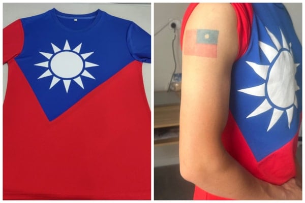 Ông thậm chí xăm quốc kỳ Trung Hoa Dân Quốc trên cánh tay phải. Theo ông, thiết kế áo dựa theo các mẫu phổ biến tại Đài Loan, chất lượng cao, tổng chi phí lô hàng khoảng 20.000 nhân dân tệ.