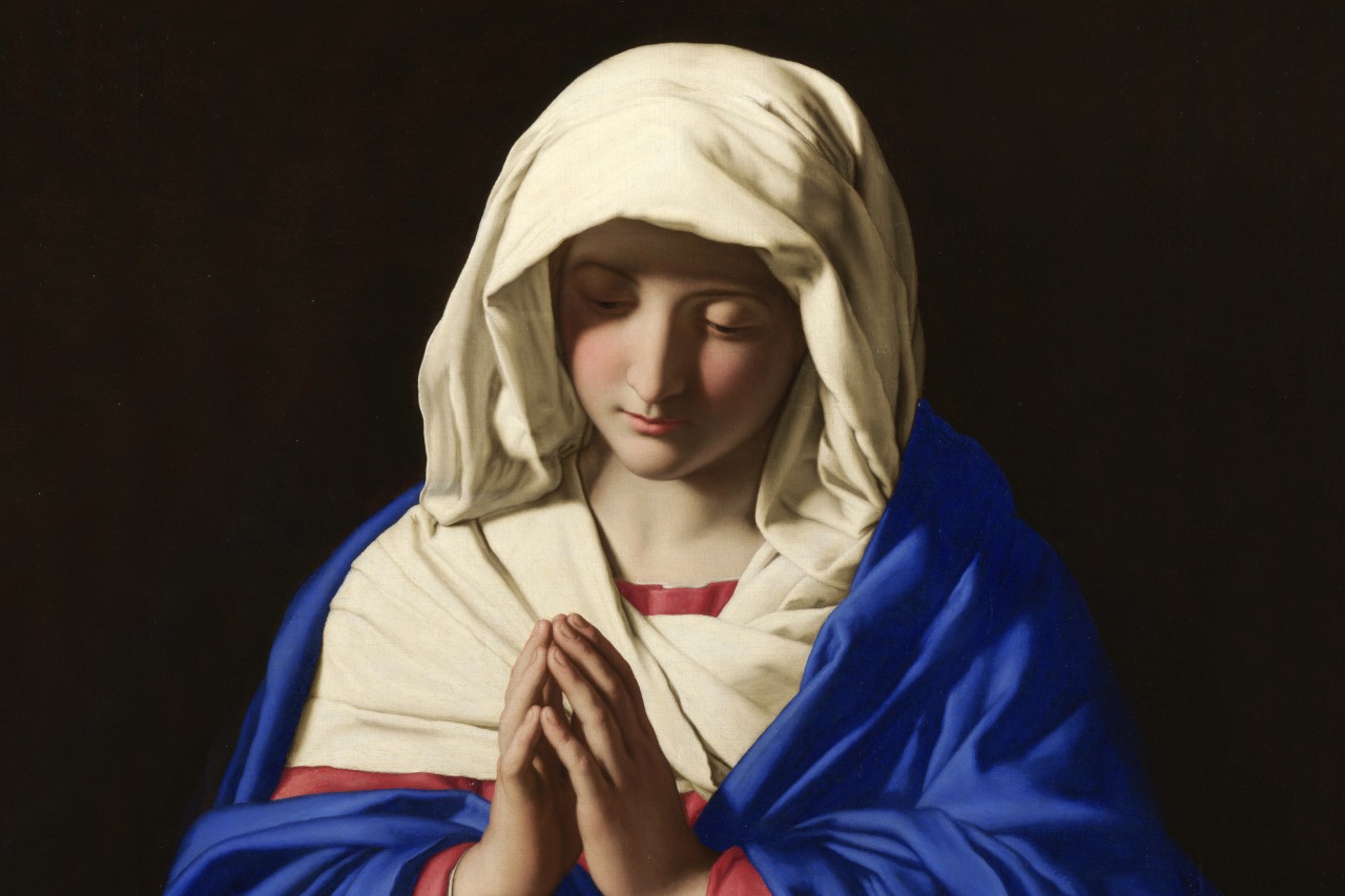 Tranh "The Virgin in Prayer" (Đức Mẹ cầu nguyện), họa sĩ Giovanni Battista Salvi da Sassoferrato, lưu giữ tại bảo tàng Quốc gia Anh, London. Đây là mô-típ tranh nổi tiếng được ưa chuộng trong nghệ thuật tôn giáo vì sự giản dị, nghiêm trang. (Nguồn: Wikipedia, Public Domain)