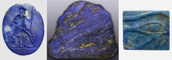 Ở Ai Cập cổ, lapis lazuli xuất hiện trong đồ trang sức, khảm trong mặt nạ Pharaoh Tutankhamun. Sắc xanh của lapis lazuli tượng trưng cho bầu trời vĩnh hằng và được gắn với thần Horus, tượng Isis, và quyền lực hoàng gia. Có giả thuyết còn cho rằng phụ nữ Ai Cập còn nghiền lapis lazuli để trang điểm mắt.