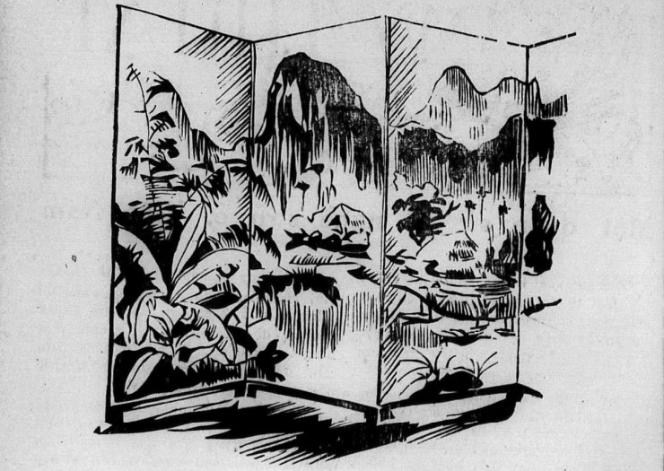 Bình phong sơn mài. (Tranh minh họa trên Văn Hóa Nguyệt San số 4 tháng 8-1952)