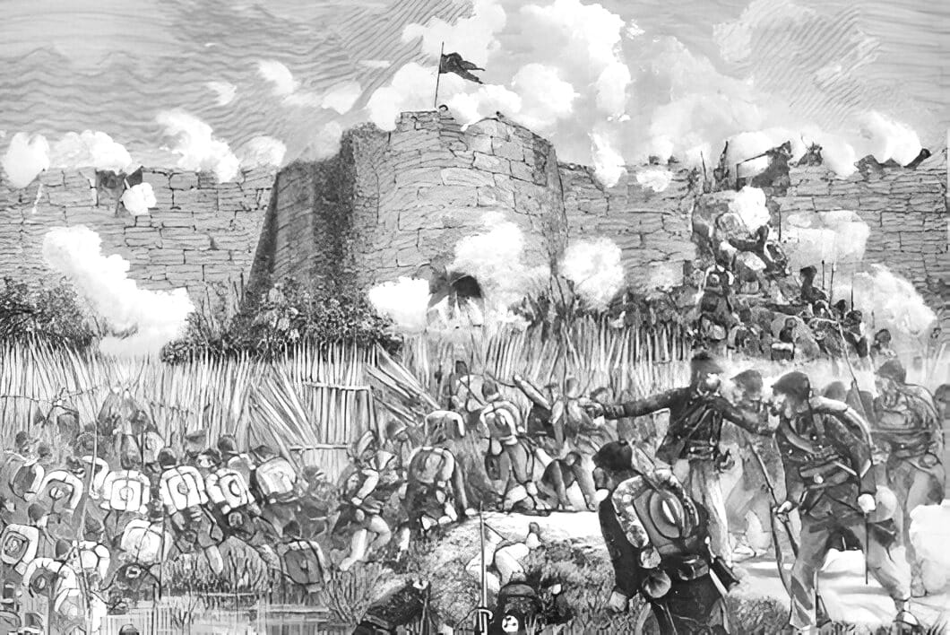 Quân Pháp tiến đánh thành Sơn Tây. (Tranh: P Méjanel, Wikipedia, Public Domain)
